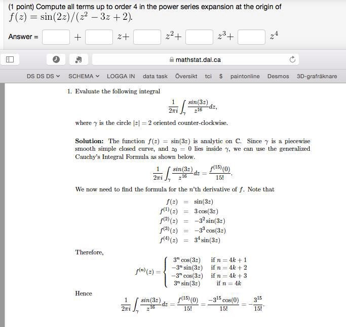 Compute all terms up to order 4 in the power series expansion at the origin of
