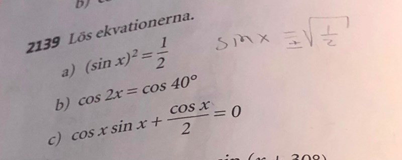 Jo, känner till det där? Men vet inte hur jag ska applicera det i uppgiften. Det står x (vinkel) på ena sidan och en vinkel på 40 grader på andra sida likhetstecknet. Jag vill ju bli av med cos framför 40, för då blir det lättare att lösa.