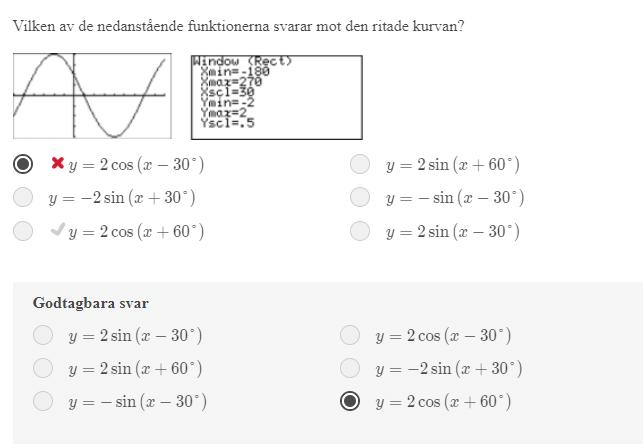 Eftersom den visar kurvan y = 2 cos x förskjuten 60° åt vänster.