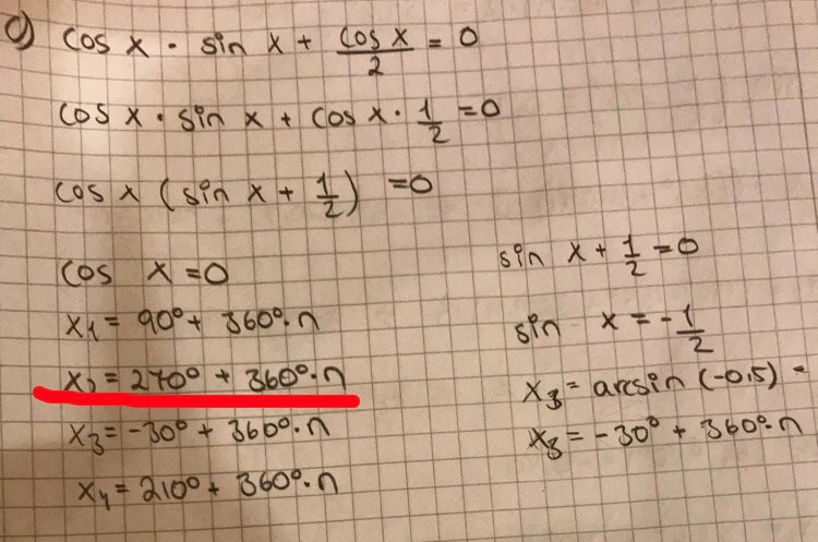 Lösningsmängden x = 90° + n*180° innehåller alla dina x1 x_1 och alla dina x2 x_2 .