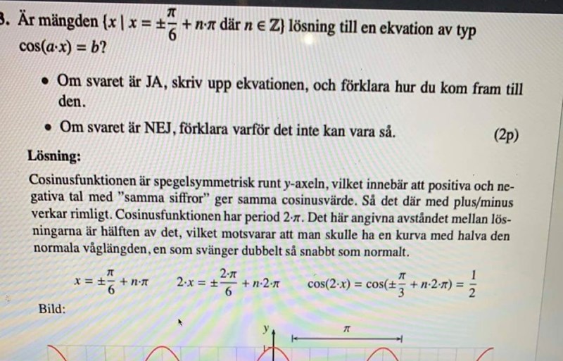 De vill ha en period på 2pi, då cos(v) har den perioden. De identifierar då v = 2x.