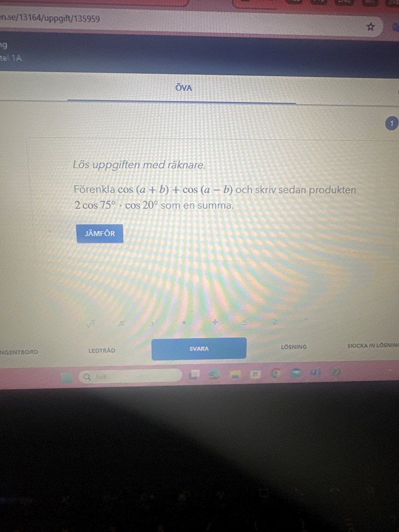 Använd nu det för att skriva om 2cos(75°)cos(20°) som en summa av två cisinusuttryck.
