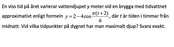 De letar efter en tidpunkt, inte ett djup. Vattnet är som djupast då cosinustermen blir maximal, alltså ett. Insatt i formeln letar de efter de tidpunkter då hela cosinustermen blir minus ett.