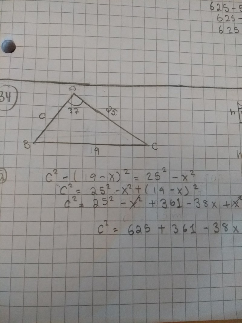Är inte AC = c = 25, BC = b = 19 och det vi letar efter är AB = a = okänt