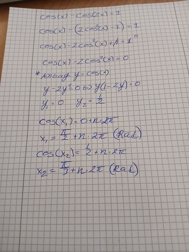 - cos(x)=1/2 har även en lösning om du går π/3 medsols i enhetscirkeln