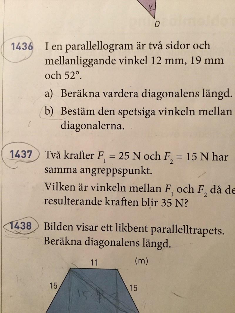 Om ni kollar på min figur har jag ritat in den info jag fått. Jag vet inte vad de menar med att jag ska räkna ut diagonalerna. Jag har väl redan fått de?