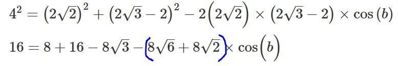 Nu vet jag ej hur jag ska fortsätta med alla roten ur tecken för att få cos(b)= som facit har fått.