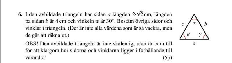 Jag har räknat ut sidan (C) och behöver räkna ut . Alla dessa tecken gör förenkligen mycket svårare än vad det egentligen är.