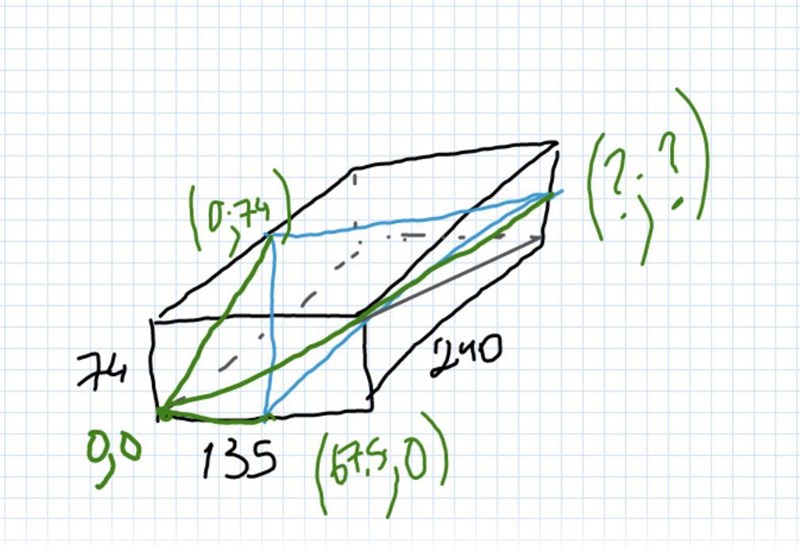 En måste lägga till rättvinkliga trianglar för beräcknigarna (det gick åt skogen flera gånger, var inte säkert i om hur det borde se ut i 3D)