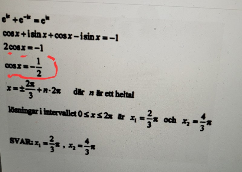 Undrar du hur man kommer från 2cosx = -1 till cosx = -1/2?