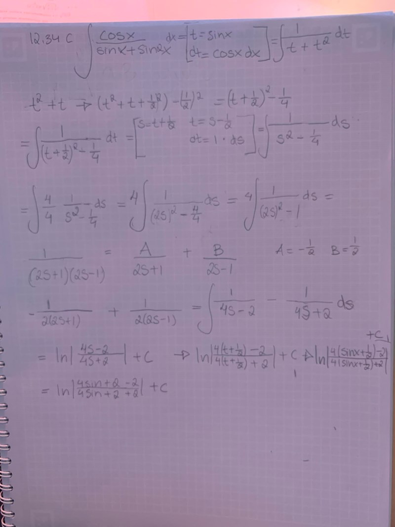 Luna: Jag skulle nog inte välja kvadratkomplettering efter första variabelbytet: