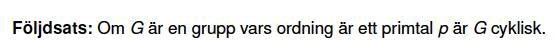 Det finns cykliska grupper som inte har primtalsordning, t.ex. . Det som satser säger är att om är ett primtal så måste vara cyklisk. Det betyder inte att om ordningen inte är ett primtal så är den inte cyklisk. Satsen säger ingenting om det fallet.