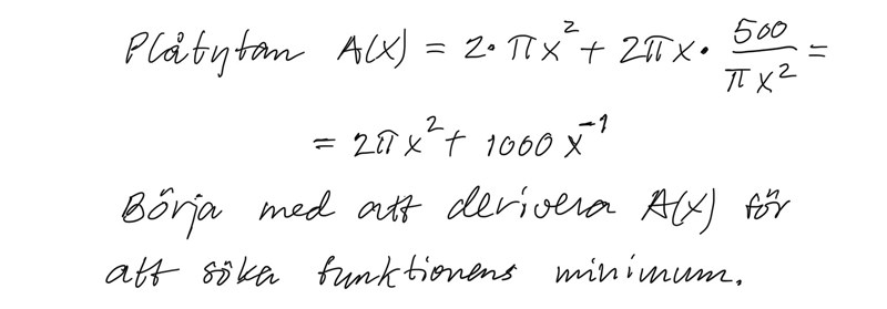 Om Radien för en cylinder är x blir höjden 500/pi*x2