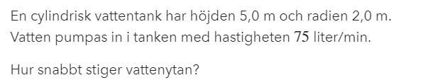 Cylindrisk vattentank. Hur snabbt stiger vattenytan?