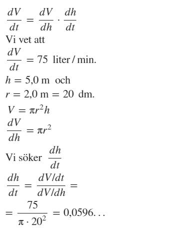 Svar: Vattenytan stiger med ungefär 6 mm per minut.