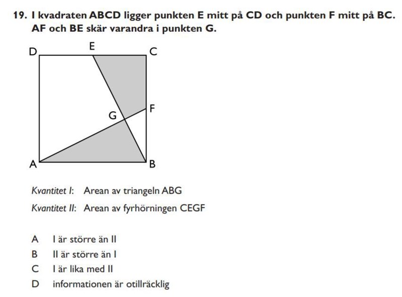 När man är vaken, som jag inte är, ser man att trianglar EBC och AFB är exakt lika, och att en bit ost lika stor som BGF tas bort ifrån dom. Finns det något geometri regeln som man borde kunna också?