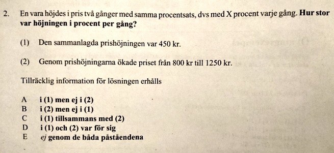 Där svarade jag B. Vi måste ha en start punkt eller?