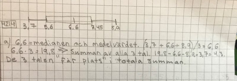 Jag vet att medianen och medelvärdet ska vara samma och att n i den första uppgiften a) är udda. Men hur ska det kunna hjälpa mig att ta reda på om de tre nämnda talen i uppgiften finns i datamängden?