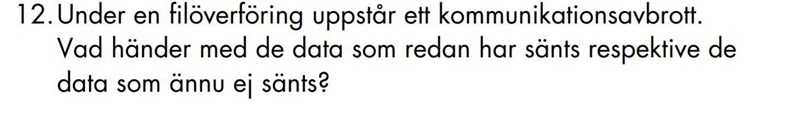 Det är inte självklart för mig vad de är ute efter. Det beror på vad det står om filöverföring tidigare. Kan du hitta om det står något om kommunikationsavbrott under överföringar i boken?