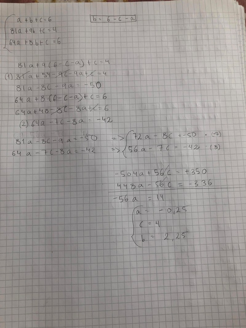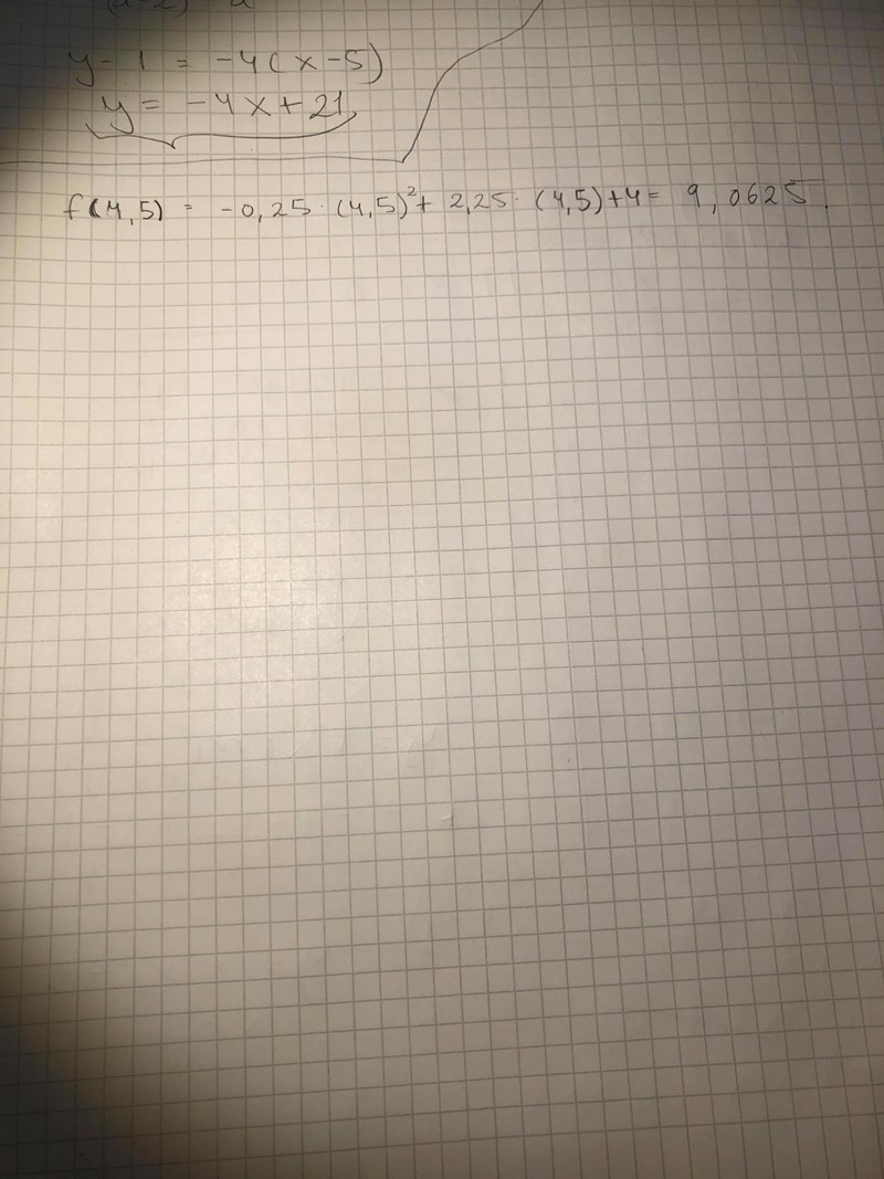 Svara med hela funktionen y = -0,25x^2 + 2,25x + 4