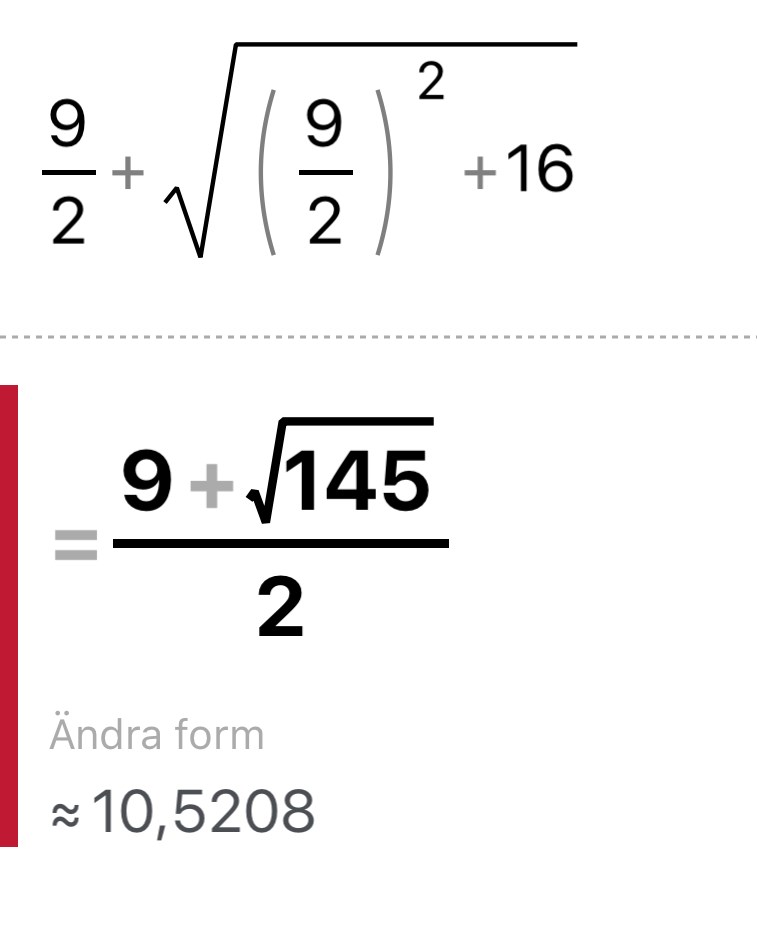 X= (9/2) +- roten ur (9/2)^2 + 16