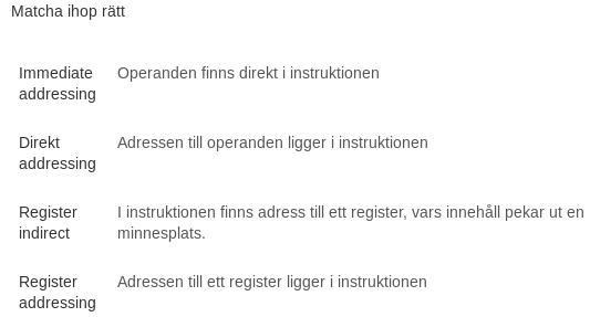 Ett register i en instruktion upptar ofta bara ett binär nummer. Om processorn har t.ex. 16 register så använder man ett binärt nummer med fyra bitar i instruktionen för att adressera ett register. En adressering till ett register brukar därför inte benämnas "adress", eftersom antal bitar i instruktionen är mycket mindre, än när processorn adresserar en minnesadress.