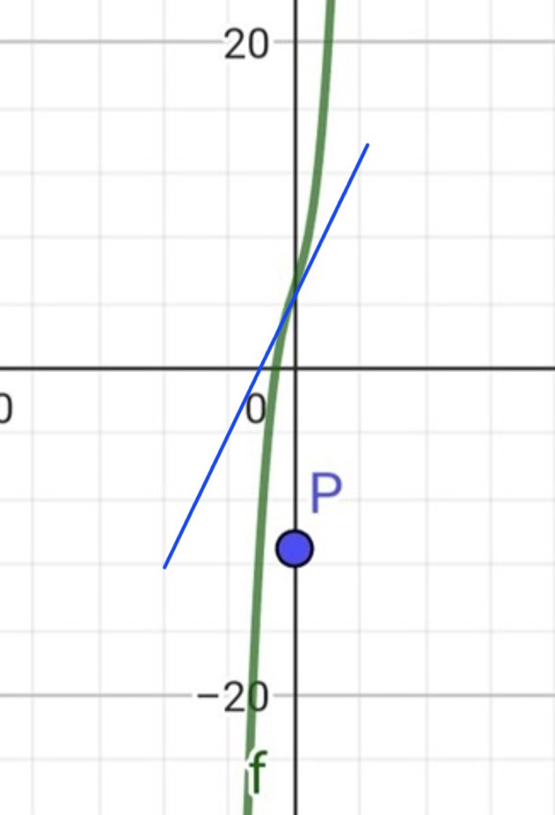 Bestämma de tangenter till y=f(x) som går genom P=(0,-11)