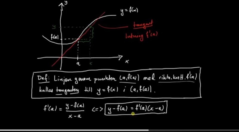 Den behöver inte vara lika stor som funktionens lutning I tangeringspunkten.