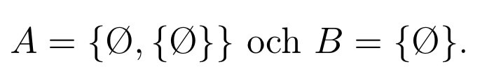 jag tänker att de antingen är äkta delmängder till varandra eftersom man kan skriva A som bara med elementet "den tomma mängden". Eller så är bara B en äkta delmängd till A