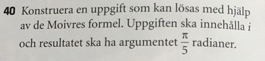 Vilket jag tycker ser jättekonstigt ut. Att ser vi ju omedelbart utan de Moivres formel.