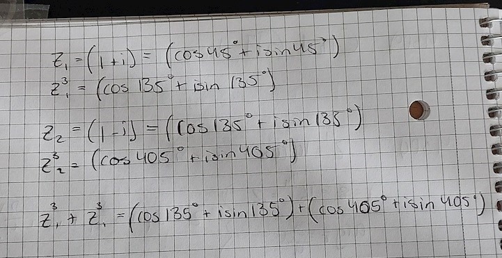 För att addera de komplexa talen (1+i)3 och (1-i)3 så kan du med fördel använda att du först markerar talen i det komplexa talplanet och lägger märke till symmetrin.