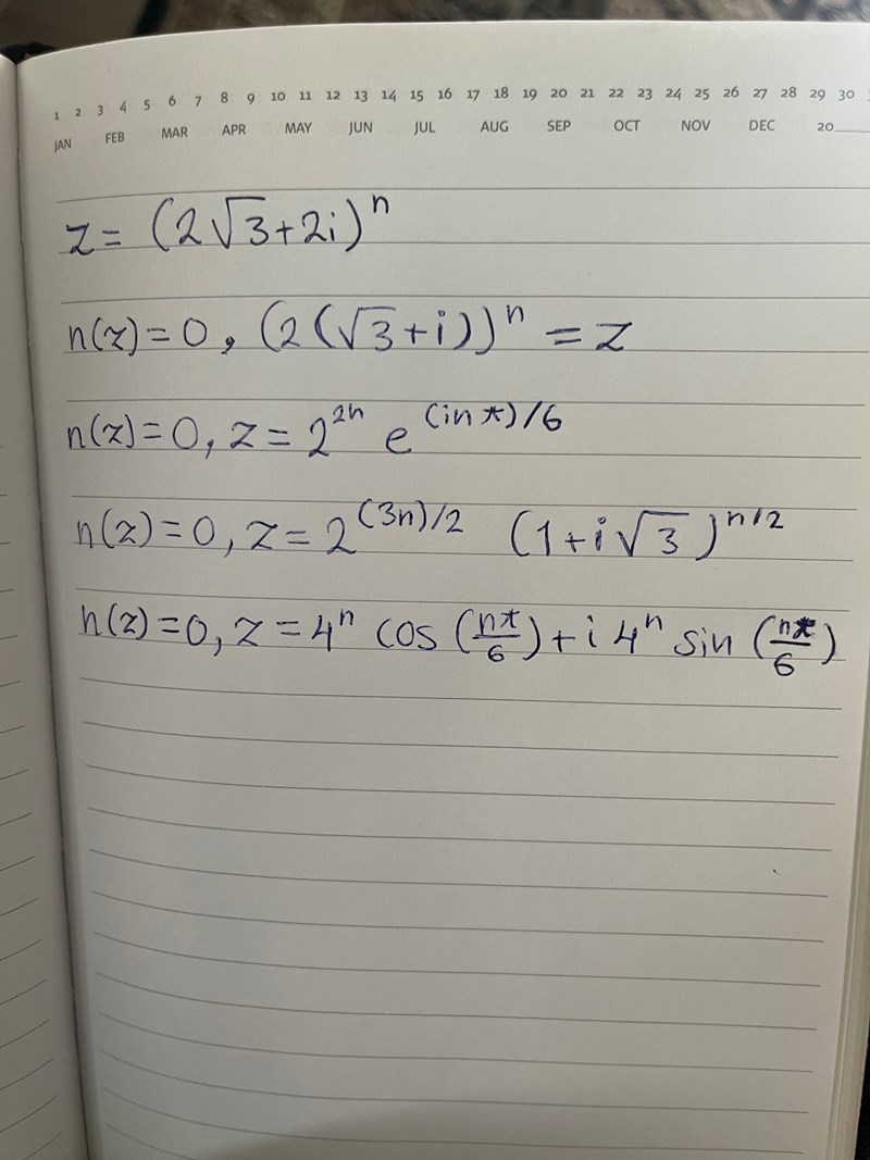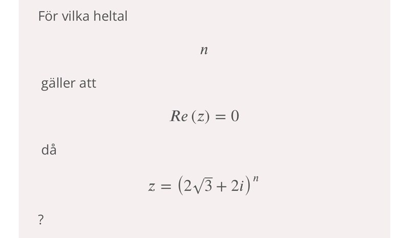 Vet inte om du gör rätt, din lösning är i alla fall inte lättbegriplig för mig. Använd fler ord i din lösning! Hur lyder de Moivres lag? Har du använt den?