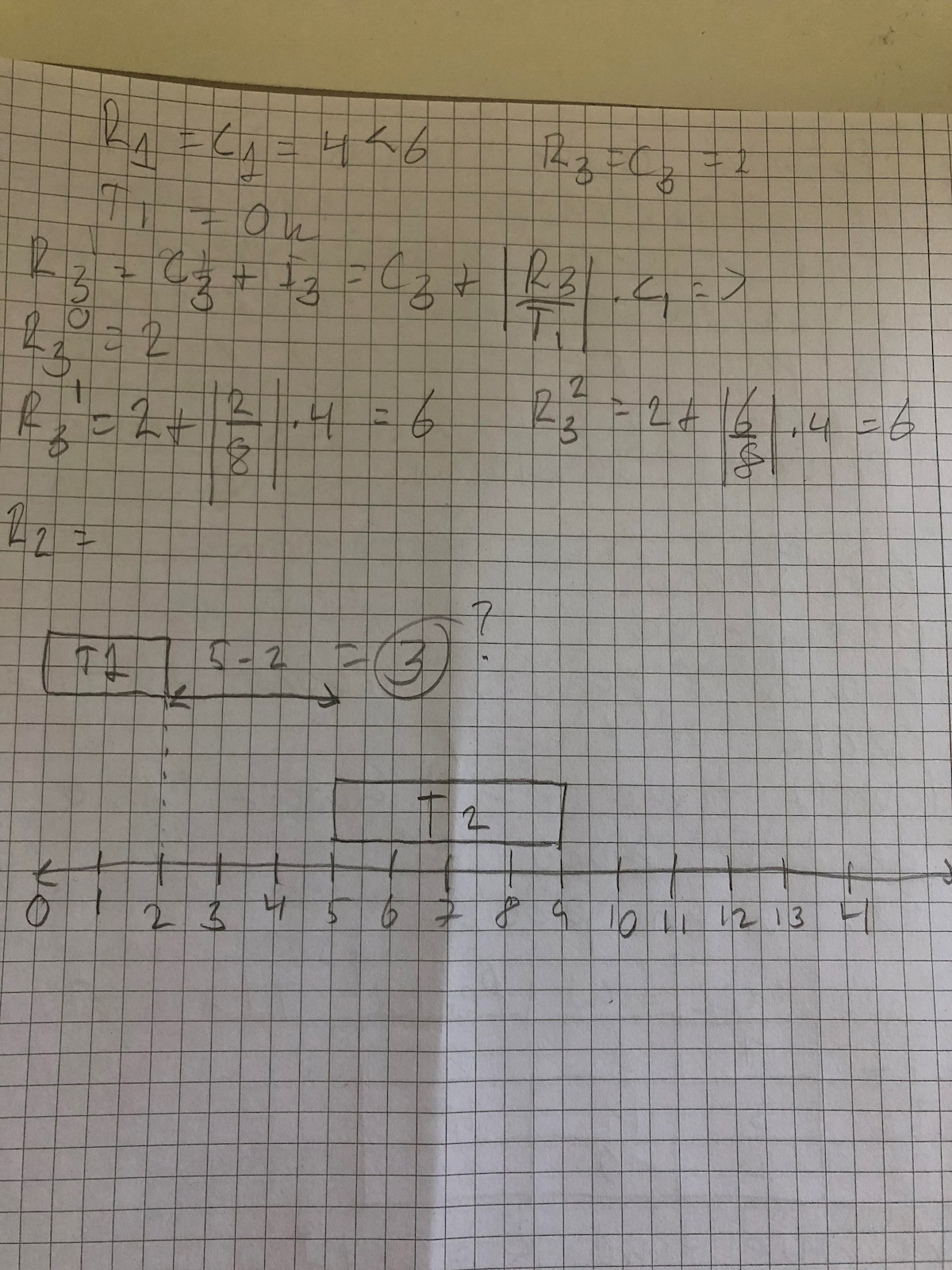 R2 för T2 måste du vara summan av dens egna samt alla andras tasks Exeuction time (den väntar ju):