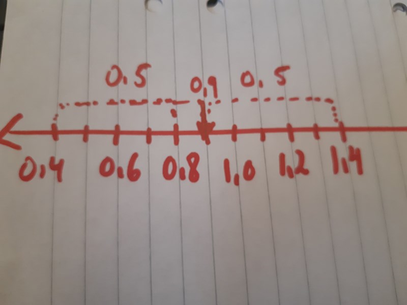 Du kan exemplevis dock också rita en tallinje och dela in den i steg och sedan se var mitten mellan talen är