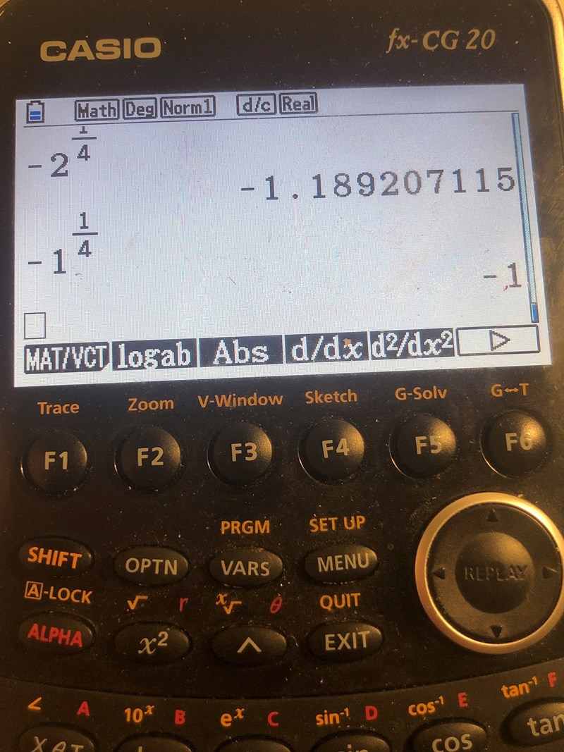 Det blir verkligen olika när man tar med parentes. Så det får helt enkelt inte vara negativt för x? Men alla positiva tillåtna? (Har testat och positiva värden på x funkar)
