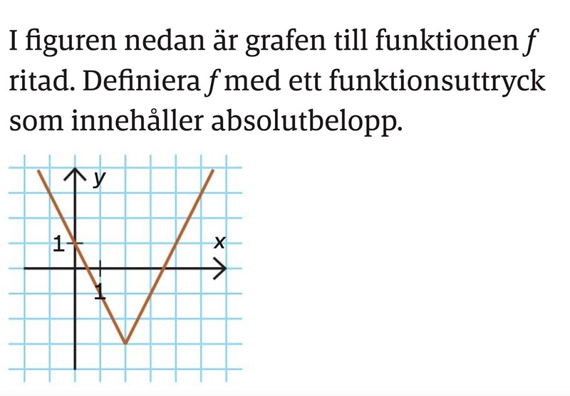 Definiera f med ett funktionsuttryck som innehåller absolutbelopp.