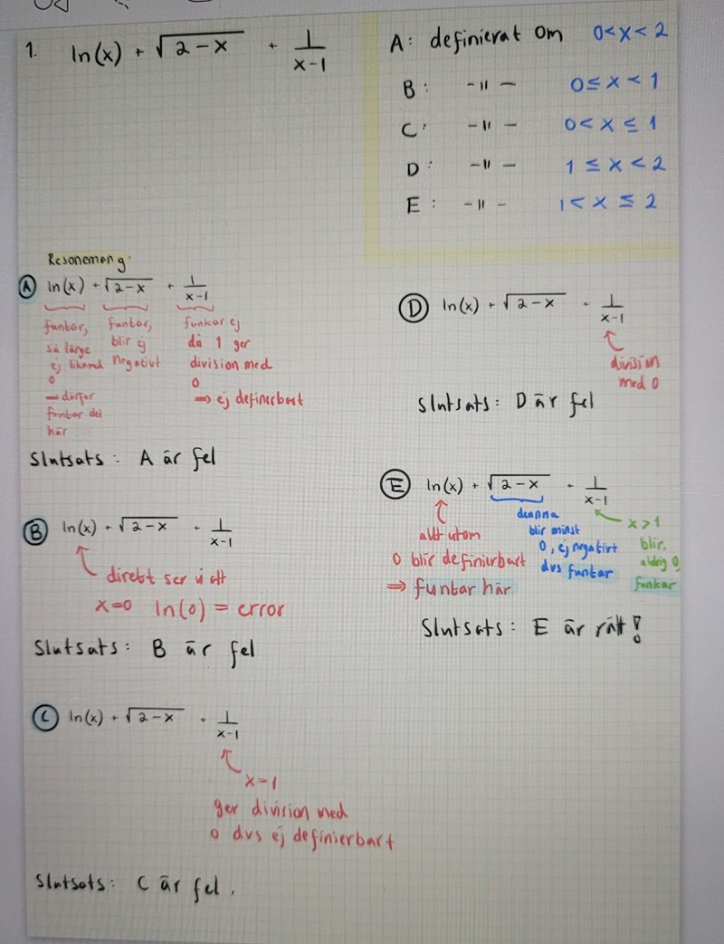 Matematik / Matte 4 / Grafer och asymptoter 1 svar 61 visningar offan123 behöver inte mer hjälp Avmarkera offan123 3072 Postad: 3 nov 2022 20:30 Redigerad: 3 nov 2022 20:31 Definierat Är detta bra utfört? Macilaci 2214 Postad: 3 nov 2022 20:49 Ja. Bra jobbat! Användare skriver Svara Du behöver Logga in eller Bli medlem först! Avbryt