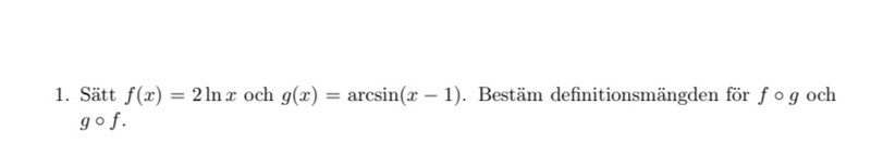 2ln(arcsin(x-1)). Arcsin måste ligga mellan - 1<x<1