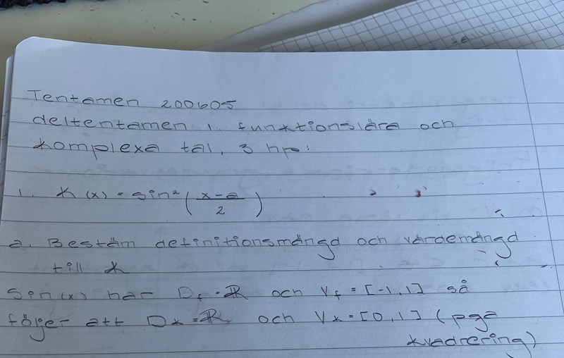Jag skulle behöva hjälp med sista lösningen i min del alltså Vk=[0,1] pga kvadrering, detta står i lösningen så jag har bara skrivit av det men förstår inte hur det blir 0,1