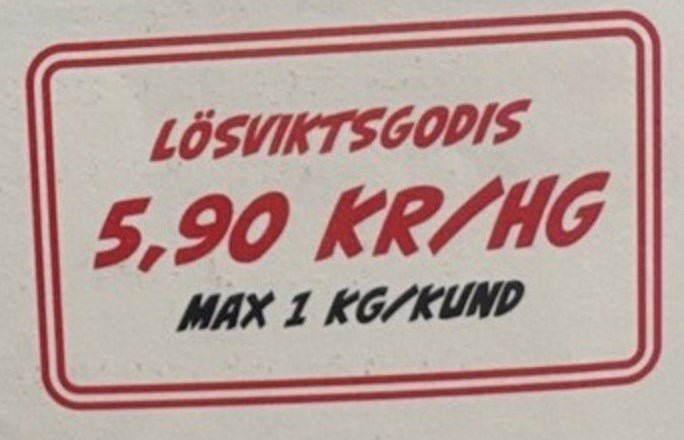 Det står inte att det finns någon begränsning för mängden godis man köper.