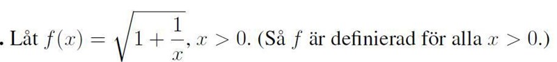 Inversens definitionsmängd: Värdemängden av f(x) är , eftersom vi har ett rottecken. Det innebär att definitionsmängden av är . :)
