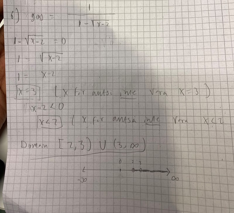 Hej! Jag vet inte varför jag har fått fel definitionsmängd… facit menar på att x inte kan vara lika med 2 men jag menar på att x kan vara lika med 2. Men värdemängden har jag svårt för att klura ut. Jag vet att f(x) inte kan vara lika med 0 för när man ersätter f(x)=0 i funktionen för att lösa ut x så går det inte… hur tänker man då man ska lösa ut värdemängden på en sådan uppgift? Tack för all hjälp jag brukar få :)!!!