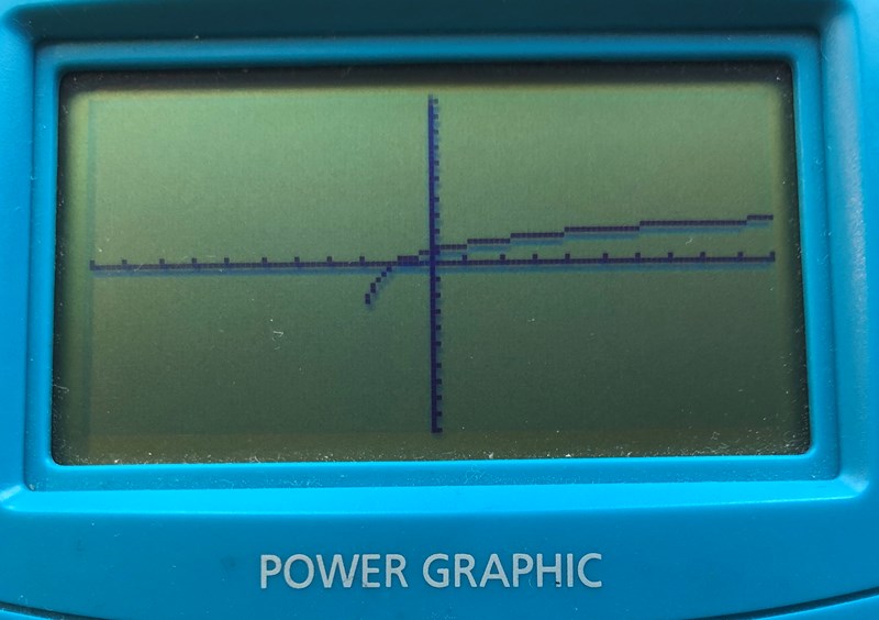 Jag tror inte man kan hävda att räknaren ritar fel, men det går att programmera så att det blir tydligt att det är en asymptot där.