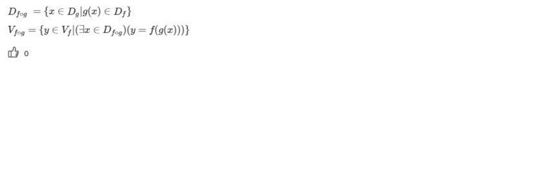 Värdemängden av är given av alla y i värdemängden av f, så att det finns minst en x i definitionsmängden av , med y = f(g(x))