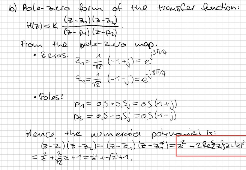 Halloj! Jag ska bestämma transfer funktionen för ett system. I bilden nedan går det att se vad poles och zeros är. Jag hänger med i allt förutom fram till hur de kommer fram till det röda inringade uttrycket. Är det nån annan som kanske förstår det?