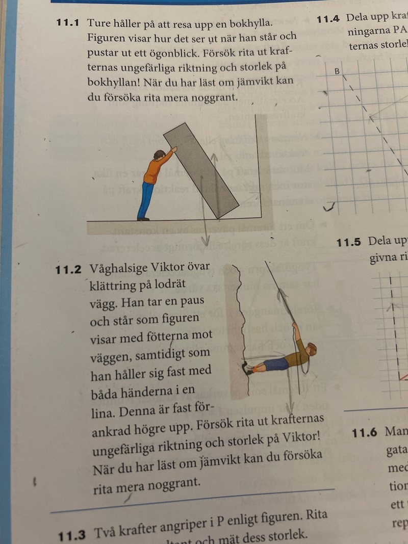 Jo, alltså jag förstå facit när jag ser det, men jag vet inte hur jag ska komma fram till svaret på egen hand. Har försökt med att kolla på videos och så men förstår fortfarande inte. Hur ritar man liksom upp krafterna?