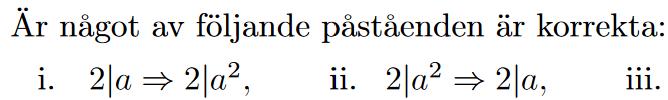Hej! Har några uppgifter angående att bevisa om påståenden är korrekta som jag är lite kluven på.