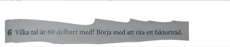 Rita faktorträdet tills det inte går att rita längre alla primtal du får och alla delsammansättningar av primtal kan 60 delas med.