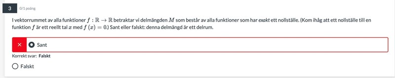 3) Har det getts exempel på vektorrummet av funktioner i boken? Du måste i alla fall veta vad det är innan du kan göra uppgiften.