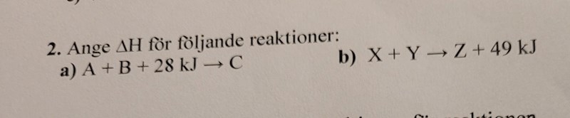 a) så jag vet att det innan reaktionspilen är att man tillsatt 28 Kj för att få igång reaktionen, betyder det att det efter pilen blir också 28 kj för det går ju åt samma energi för att sammansätta det man nyss delade upp innan pilen?